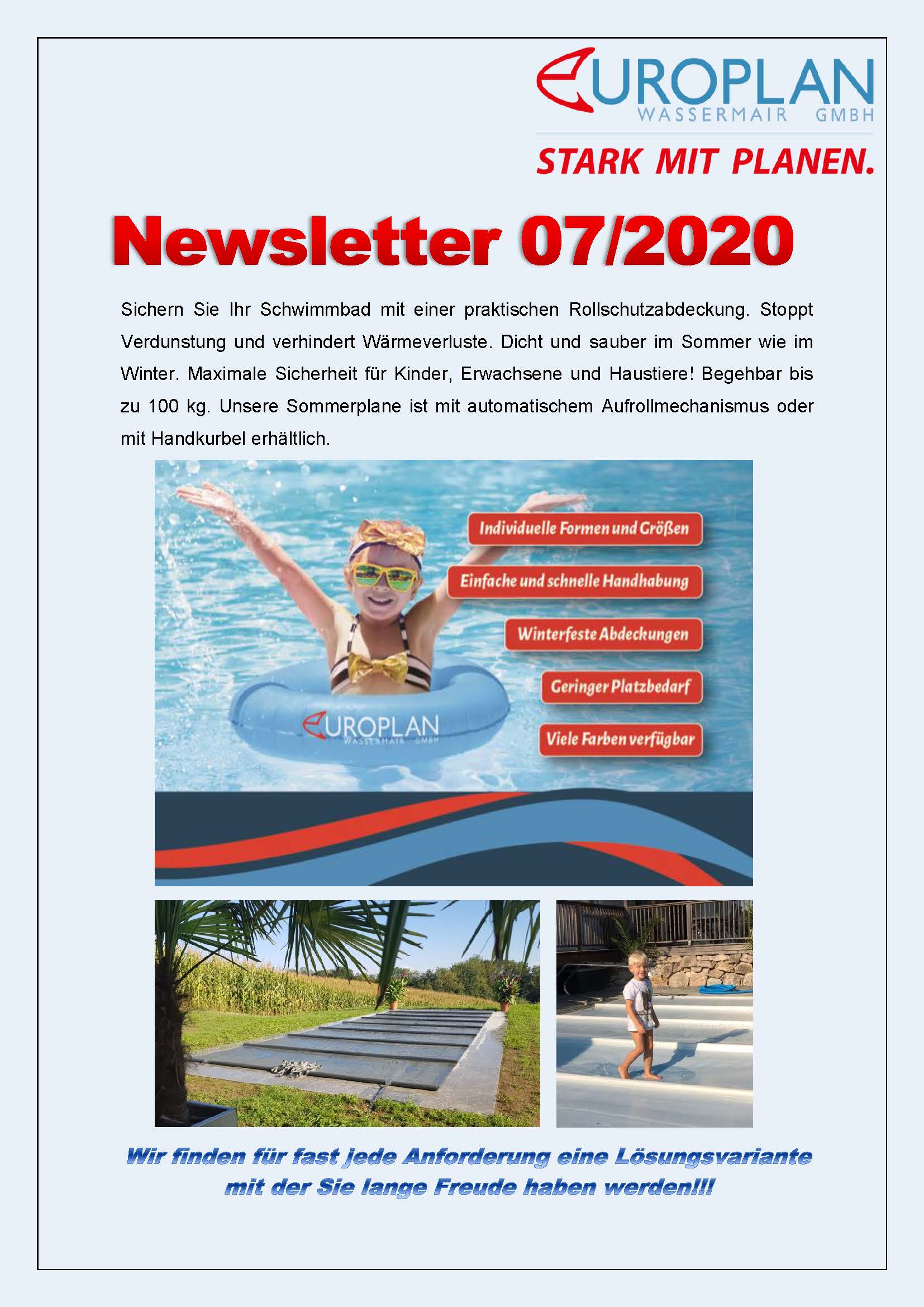 Wir halten Sie über unsere aktuellen Projekte, Angebote und Produkte immer am Laufenden. Wenn Sie unseren Newsletter abonnieren, verpassen Sie keine Neuigkeiten! Selbstverständlich freuen wir uns auch, Sie persönlich informieren zu dürfen. Unser freundliches und engagiertes Team von der Europlan Wassermair aus Oberösterreich steht Ihnen jederzeit gerne zur Verfügung. Kontaktieren Sie uns!