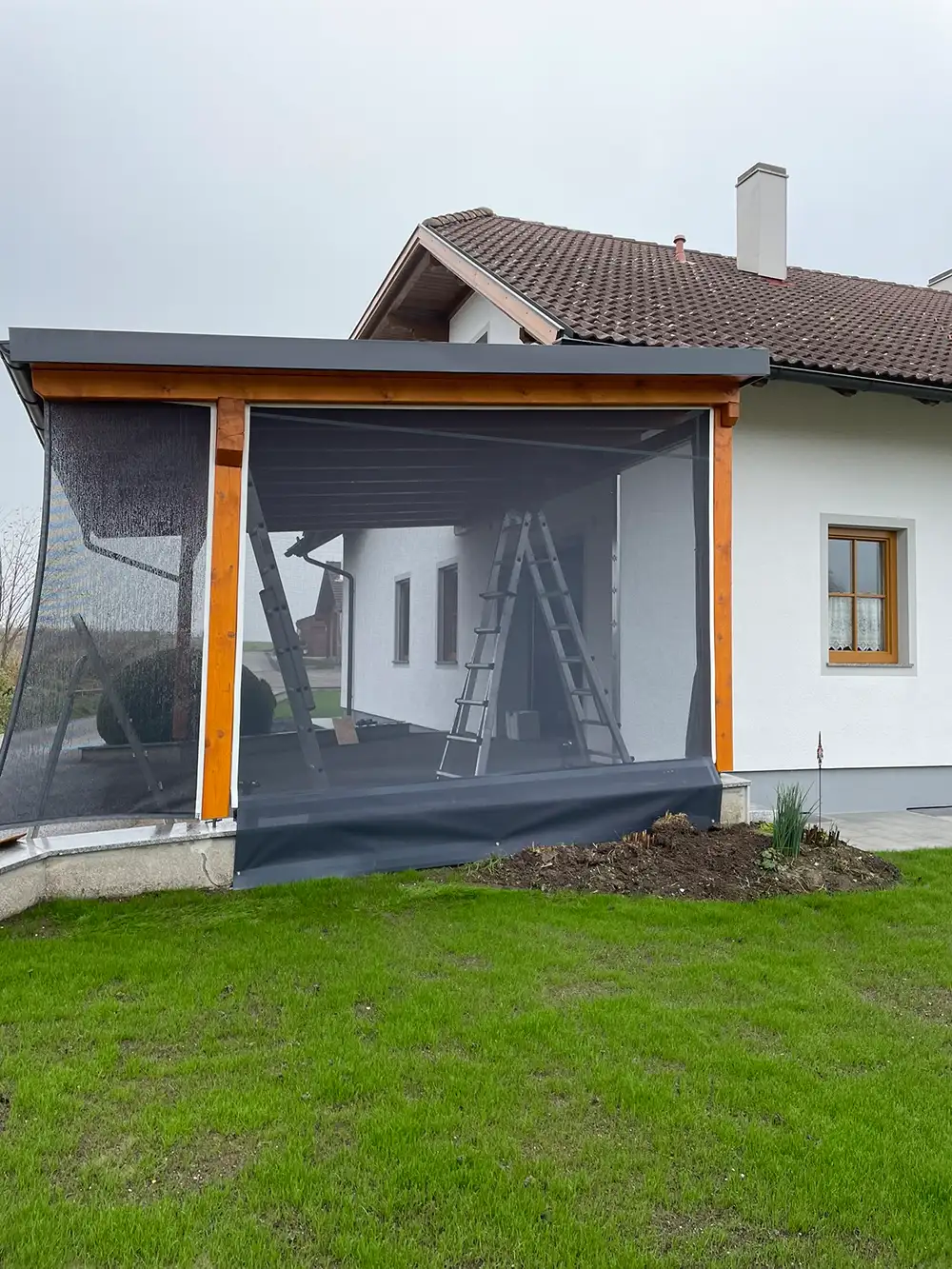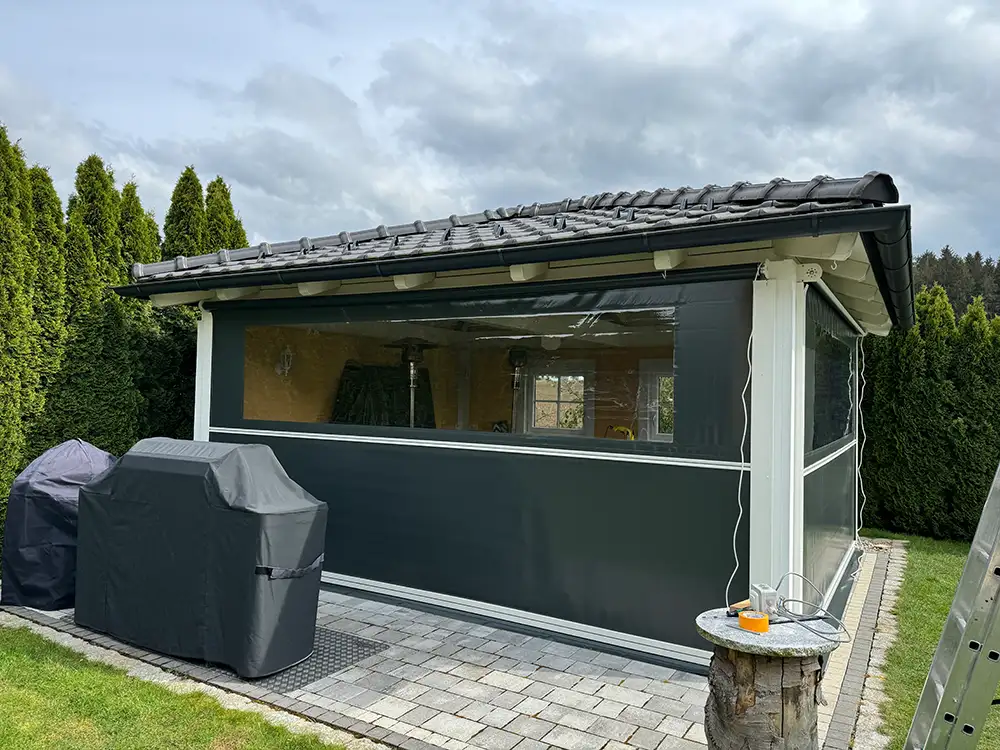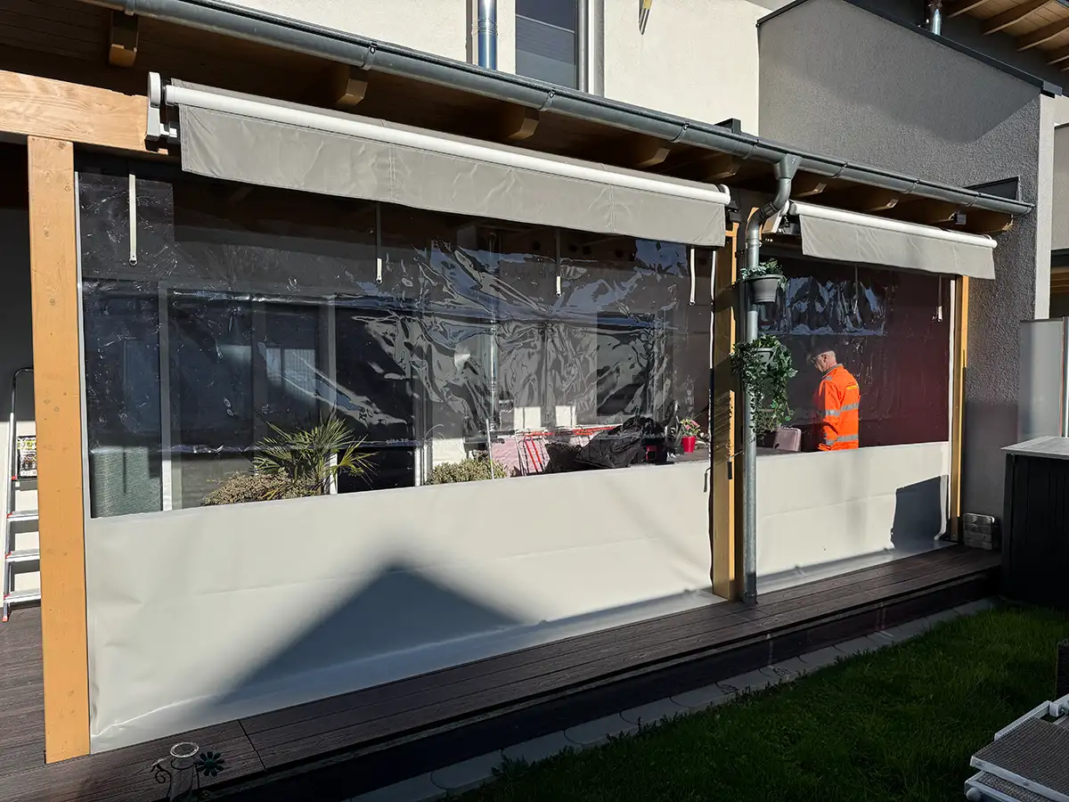 Wählen Sie aus verschiedenen Materialien, Farben und Transparenzen – von klaren Folien bis hin zu blickdichten Varianten. Auf Wunsch übernehmen wir auch die komplette Montage, damit Sie Ihre neue Wohlfühlzone sofort nutzen können.